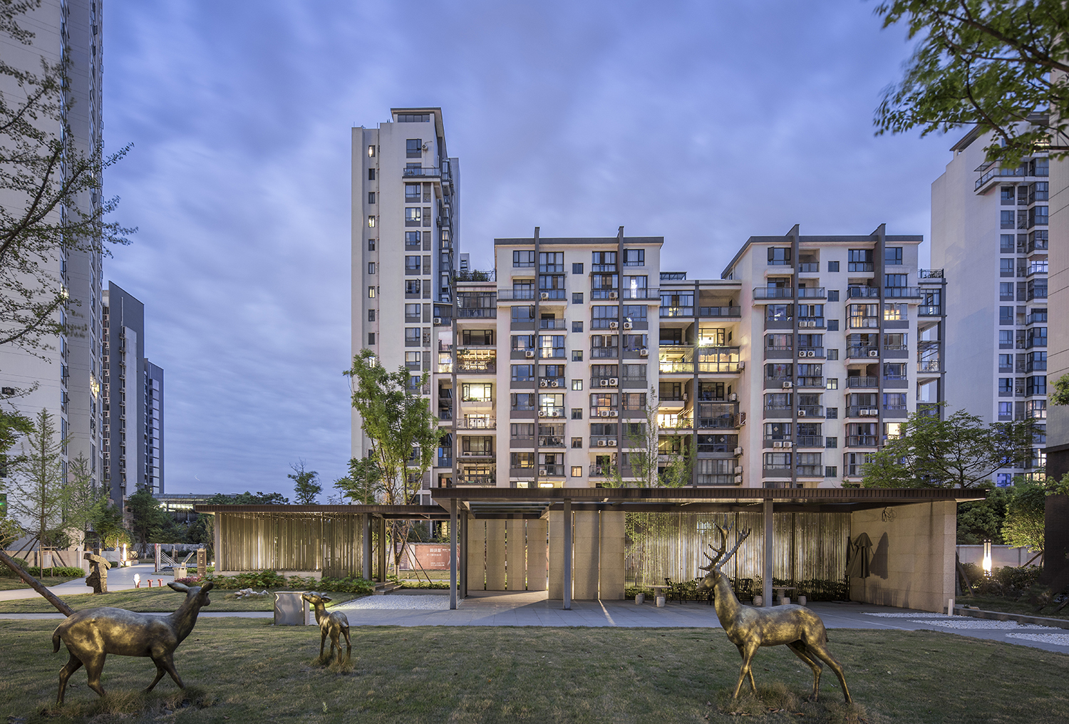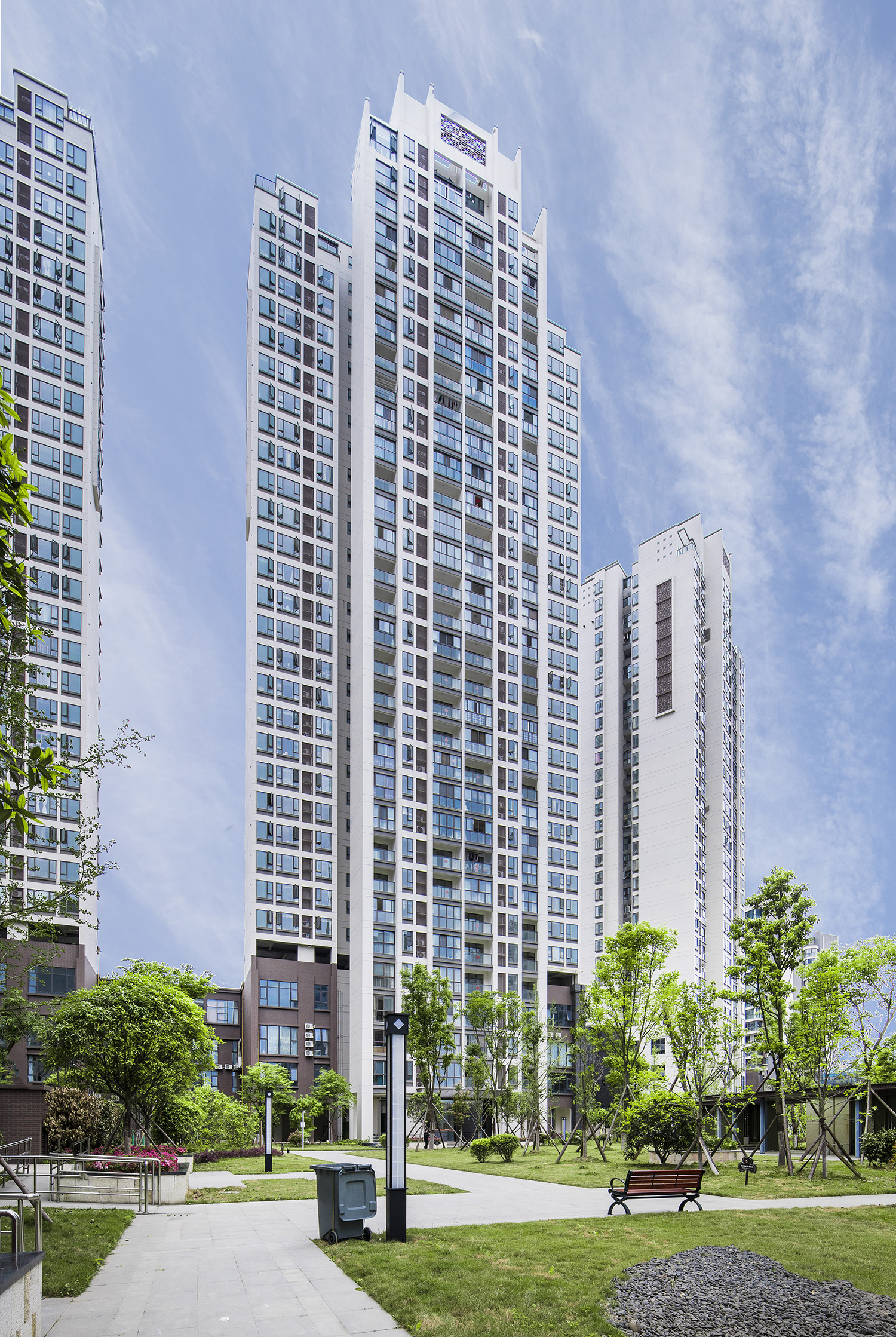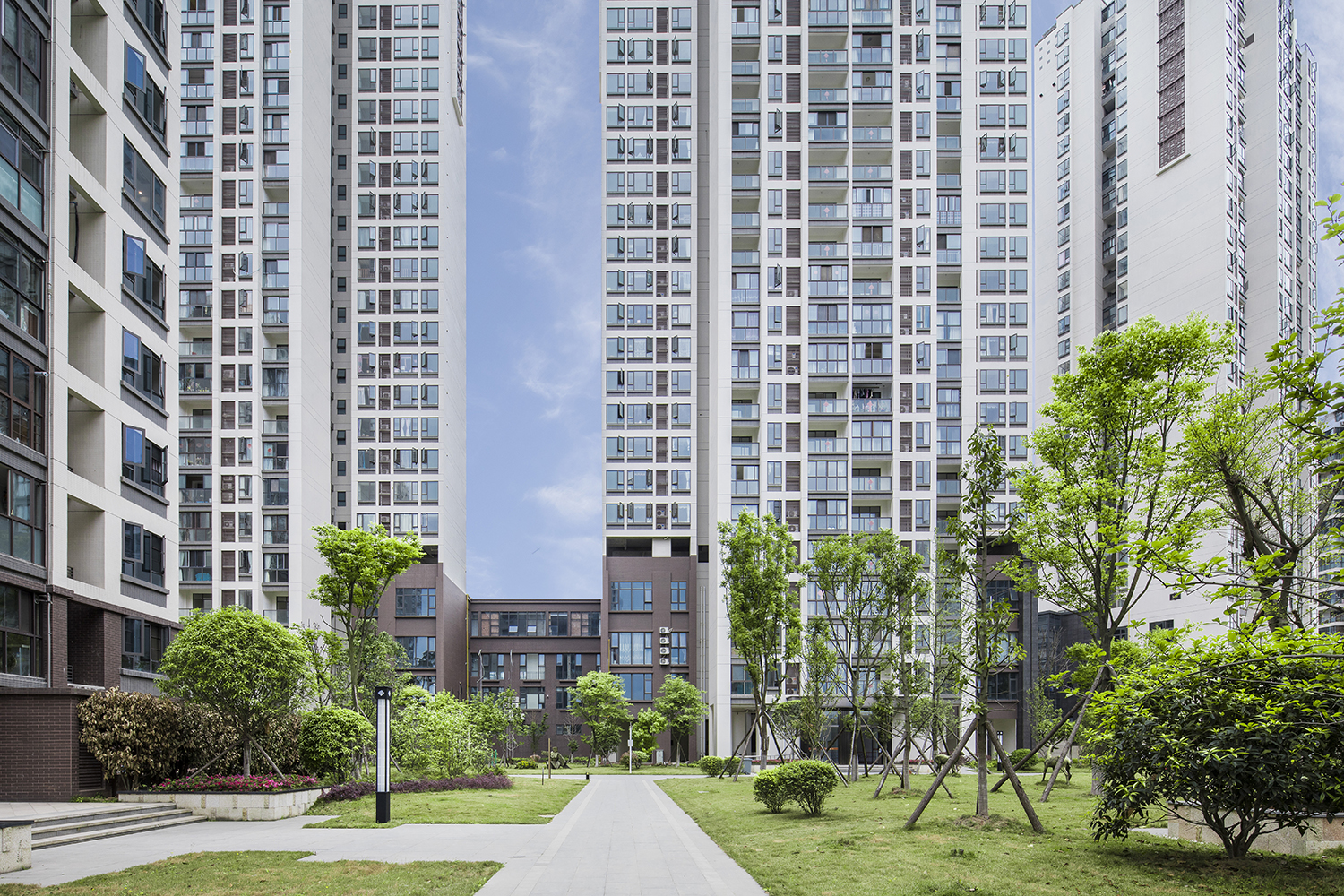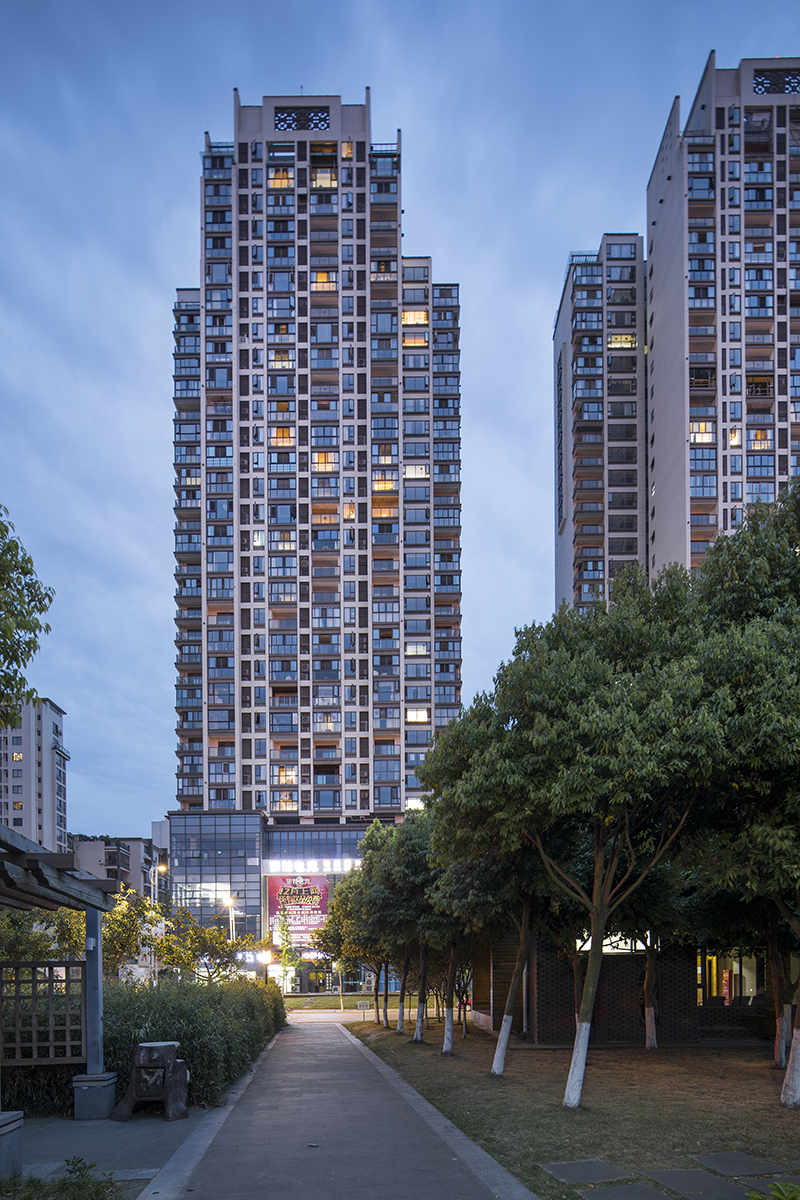 項(xiàng)目位于德陽(yáng)市經(jīng)濟(jì)技術(shù)開(kāi)發(fā)區(qū)中心地段,屬于德陽(yáng)市重點(diǎn)發(fā)展區(qū)域。項(xiàng)目西側(cè)緊鄰市政南湖公園景觀朝向極佳,北側(cè)和西側(cè)分別為天上南路和峨眉山路,交通便利,區(qū)域優(yōu)勢(shì)明顯。沿用地西側(cè)南湖公園設(shè)置城市商業(yè)及100米點(diǎn)式高端住宅,濱水公園、江景一覽無(wú)余,便于人流的引入及城市形象的塑造。場(chǎng)地中心區(qū)域點(diǎn)式、板式高層延續(xù)一期的半圍合布局,更注重空間的通透性,形成多個(gè)大尺度中心庭院。