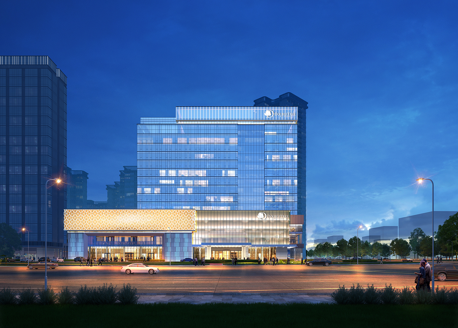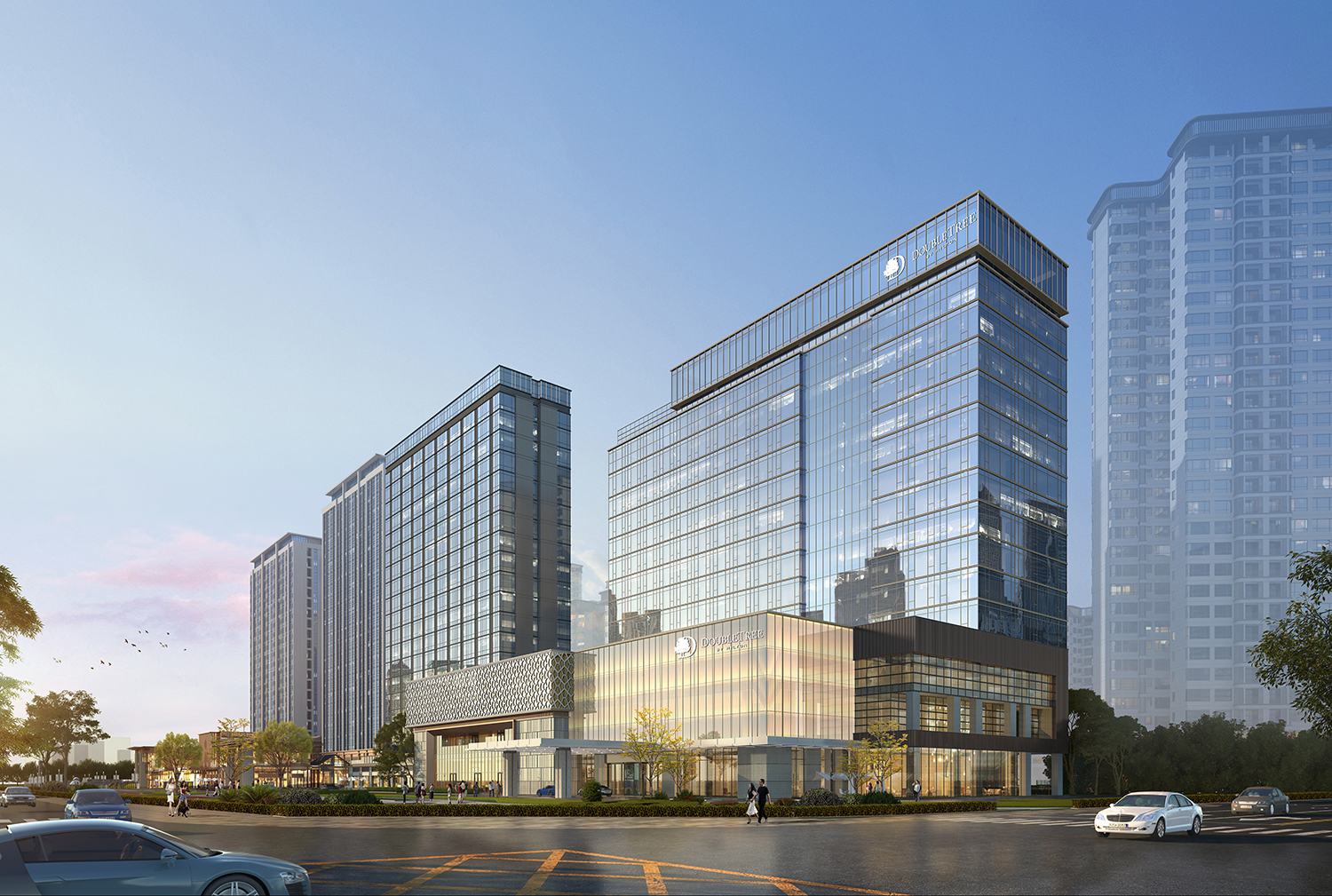 項(xiàng)目位于成都新型城鎮(zhèn)化規(guī)劃“東進(jìn)”區(qū)域的簡陽新城區(qū),地理位置優(yōu)越,臨近迎賓大道與站西大道交叉口。項(xiàng)目定位為希爾頓逸林五星級酒店,外立面采用現(xiàn)代風(fēng)格設(shè)計,通過體塊的疊落和不同材料及紋理的搭配,營造出迎賓大道上一座標(biāo)志性建筑。酒店首層主要功能為接待區(qū)及餐飲區(qū),包括接待大廳、大堂吧、全日餐廳和中餐廳。二層設(shè)有大型宴會廳和會議室,三層為康體中心、健身房、茶樓及屋頂花園等設(shè)施。酒店共設(shè)十層,提供250間客房。項(xiàng)目旨在為天府機(jī)場臨空經(jīng)濟(jì)區(qū)提供高標(biāo)準(zhǔn)的酒店配套設(shè)施。