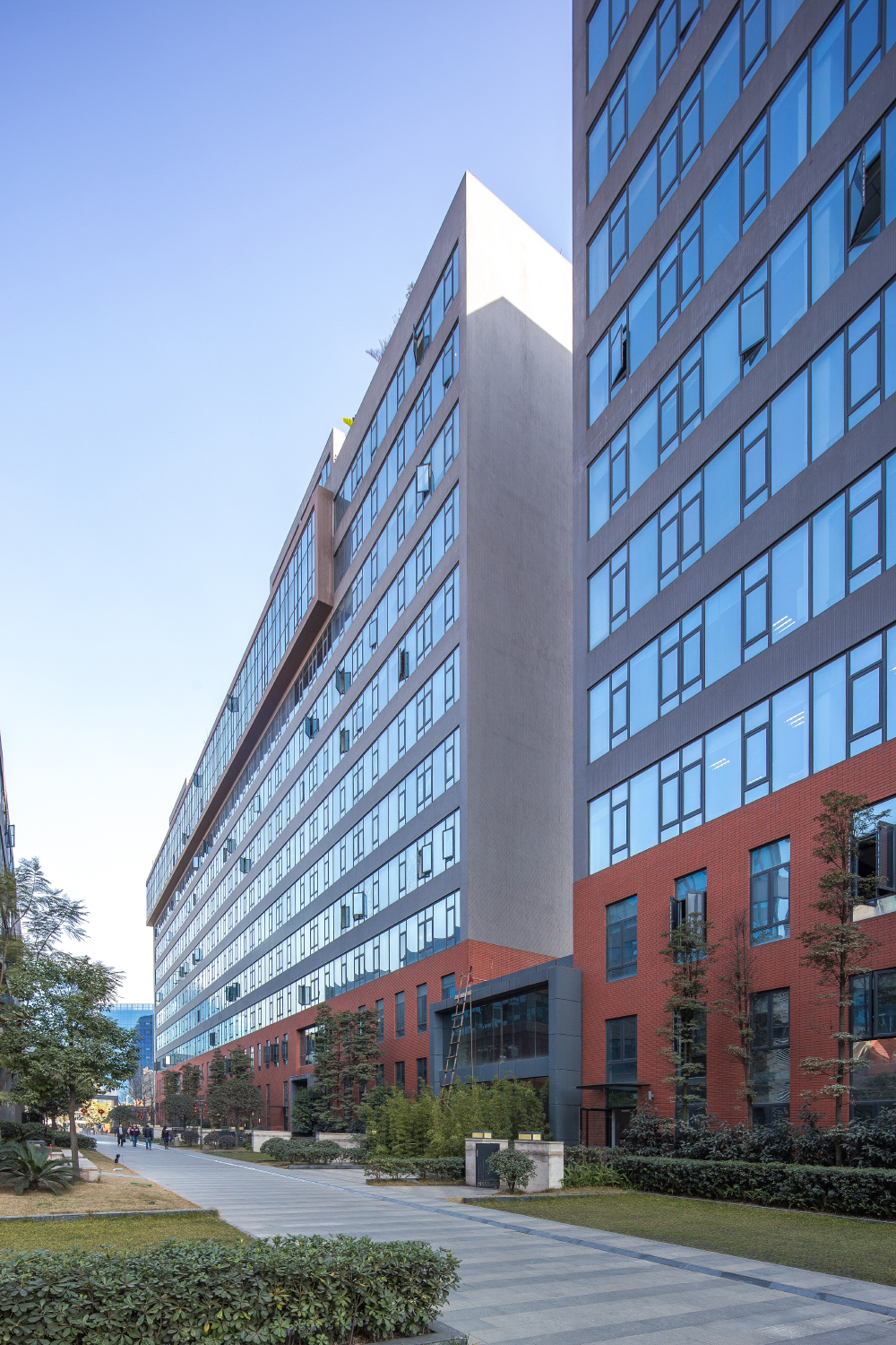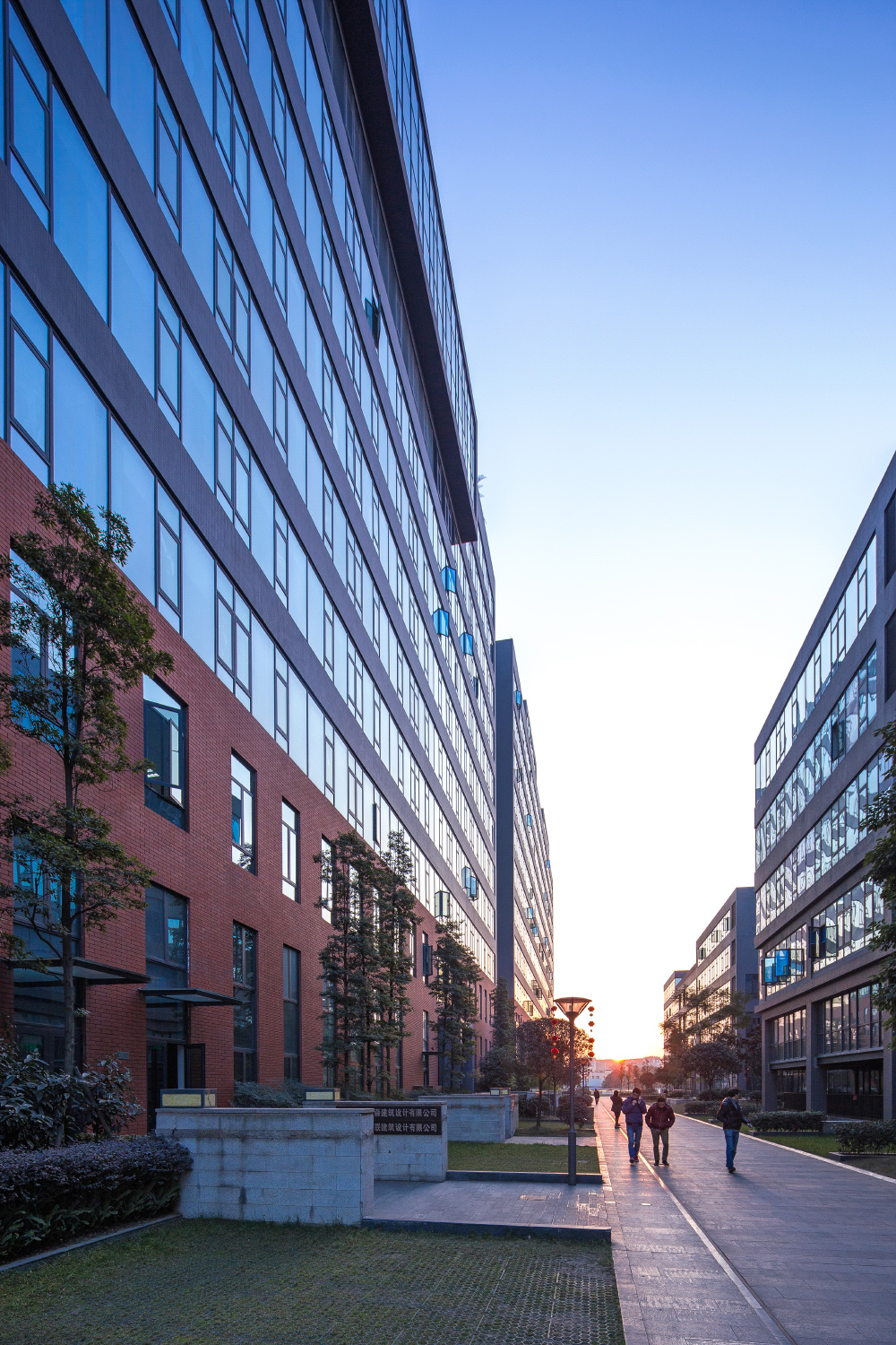 項(xiàng)目位于成都市武侯區(qū)的高新產(chǎn)業(yè)園,東側(cè)毗鄰三環(huán)路,隨著時(shí)代的發(fā)展,園區(qū)已經(jīng)不再適合工業(yè)生產(chǎn),這里更適合規(guī)劃成一個(gè)新型的復(fù)合型創(chuàng)意園區(qū)。因基地和建筑功能的屬性,不受到規(guī)劃對(duì)建筑日照的控制要求,所以采用北低南高的規(guī)劃布置,形成有豐富層次感的城市天際線。建筑單體分為三個(gè)主要客戶類(lèi)型,有可以作為企業(yè)總部的別墅獨(dú)棟,符合新型科技服務(wù)產(chǎn)業(yè)辦公特點(diǎn)的多層大空間單元和適用于創(chuàng)業(yè)初期團(tuán)隊(duì)的高層公寓式小單元。 建筑群的首層設(shè)置園區(qū)的商業(yè)配套,局部架空形成交互空間。