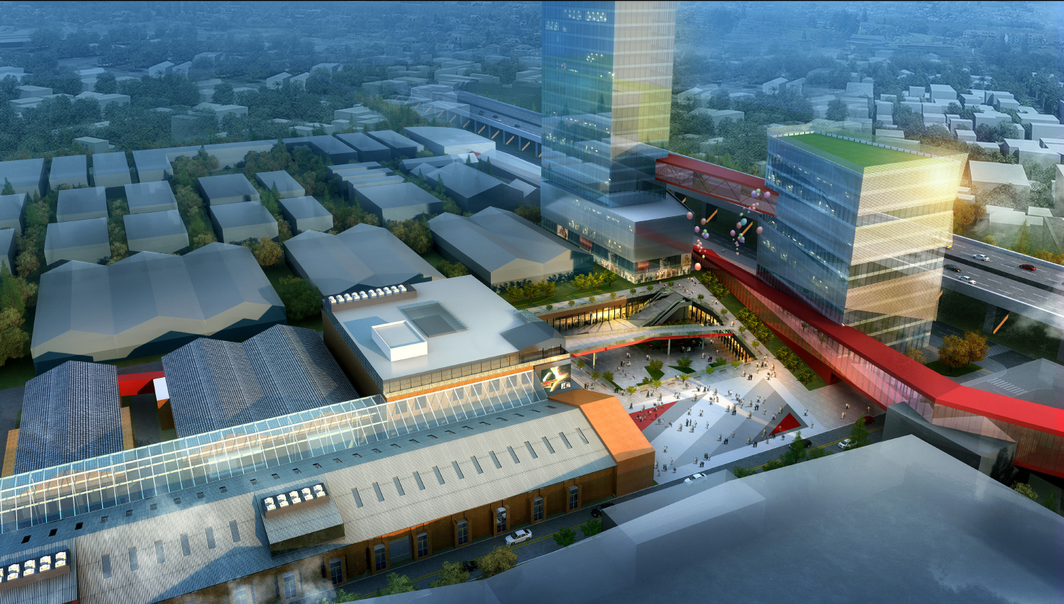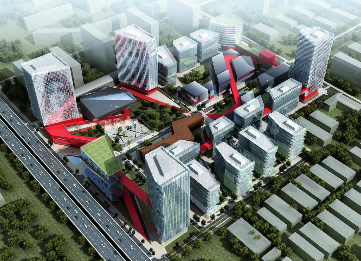 本項(xiàng)目位于北京朝陽(yáng)區(qū)競(jìng)園文化創(chuàng)意產(chǎn)業(yè)園內(nèi),總占地面積151,848平方米,建成后建筑面積將達(dá)到375,220平方米,其中地上建筑面積300,220平方米,地下建筑面積75,000平方米。項(xiàng)目的規(guī)劃目標(biāo)是將該園區(qū)打造為一個(gè)國(guó)際影像產(chǎn)業(yè)集聚區(qū)和服務(wù)平臺(tái),構(gòu)筑以文創(chuàng)為核心,并附有多遠(yuǎn)選擇的產(chǎn)業(yè)格局,形成工作,生活,服務(wù)功能無(wú)縫銜接的自我完備的獨(dú)立循環(huán)生態(tài)系統(tǒng)。項(xiàng)目?jī)?nèi)有大中小型企業(yè)辦公,商業(yè)街區(qū),展示中心,配套服務(wù)等功能。老園區(qū)現(xiàn)狀建筑陳舊,景觀和道路系統(tǒng)混亂。本次設(shè)計(jì)將對(duì)該園區(qū)進(jìn)行全面的升級(jí)改造,重新規(guī)劃內(nèi)部交通組織,對(duì)景觀進(jìn)行精細(xì)化設(shè)計(jì),并且對(duì)圍墻及入口大門(mén)進(jìn)行了全面改造,力求打造一個(gè)全新形象的文創(chuàng)產(chǎn)業(yè)園。
